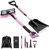 Best Choice Products 4 in 1 Snow Brush with Shovel, Squeegee & Ice Scraper, Up to 39" Extendable Foam Grip, 270° Pivoting Snow Brush for Car Truck SUV, Storage Bag Included - Pink