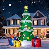 6% Off7 FT Christmas Inflatable Tree Outdoor Decorations, Blow up Christmas Tree with 3 Gift Boxes Yard Decoration Built-in LED Lights for Garden Lawn Holiday Decor
