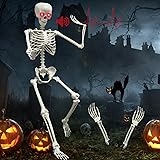 1% OffWODMAZ 5.4Ft Halloween Skeleton, Full Size Posable Skeleton with Glowing Eyes Creepy Sound, Full Body Life Size Skeleton and 2 Arm Stakes for Halloween Indoor Outdoor Haunted House Decorations