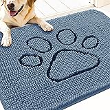 OLANLY Dog Door Mat for Muddy Paws 30x20, Paw Print Design, Absorbs Moisture and Dirt, Non-Slip Washable Doormat, Quick Dry Chenille Mud Mat, Entry Indoor Entryway Carpet, Airy Blue and Black