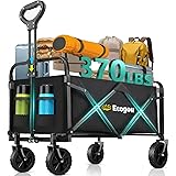 Ecogou Collapsible Wagon with Wheels, 370lbs Weight Capacity Foldable Beach Wagon with Flexible Handle Portable Utility Wagon Cart for Outdoor, Grocery, Garden, Camping